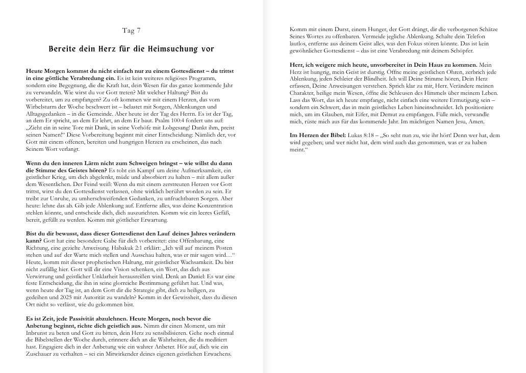Samstag, 11.01.2025 Eine Woche der Offenbarung liegt hinter uns – eine Woche, in der Gott uns mit einer unausweichlichen Wahrheit konfrontiert hat: Nichts verändert sich ohne eine radikale...